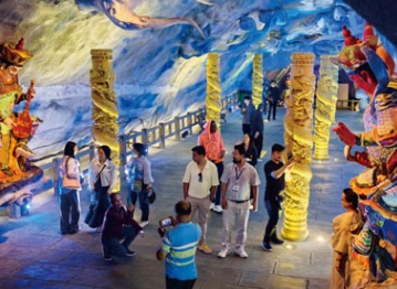 在旅游开发中,该村致力于把山区建成景区、矿区建成景区、居民生活区建成景区的“三区融合”发展思路,并制定标准,逐一落实。其中,利用废弃矿洞开发特色文旅融合项目,将4.8万平方米的矿道改造为全球首个矿洞探险神话主题景区“三界洞天”,融入盘古开天等57个神话场景;利用矿洞恒温环境打造“洞藏酒”;发展矿洞食用菌种植,探索出了尧治河特有的“矿洞经济”与文旅融合发展的新路径,成为全村产业融合发展新的增长点。