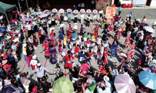 酸嘢飘香庆丰收,民俗竞技展新颜。在广西柳州市融安县大良镇良北村年洞屯,融安县举办了以“金秋绘风景,酸嘢唱赞歌”为主题的2025年农民丰收节暨大良镇第四届坛子酸擂台赛。当地苗族、壮族、侗族等民族群众欢聚一堂,通过开展集百家米、插秧比赛、挑稻谷接力等传统农事活动,以农事竞技、民俗展演共庆中国第八个农民丰收节。