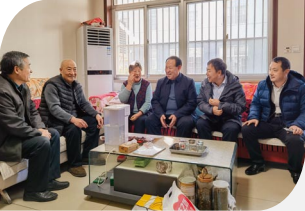 陵阳街村党总支书记马先富(右三)到村民家中看望老人