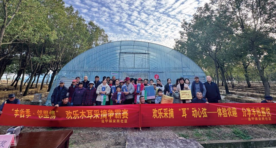 三级架构聚合力,靶向破题强引领。2021年社区“两委”换届后,平均年龄34.4岁的年轻班子主动扛起村集体领办合作社试点重任,创新构建“社区党总支—产业党支部—产业党小组”三级联动体系。针对林下木耳这一核心产业,专门成立木耳产业园党支部,吸纳9名党员(含3名致富能手、2名返乡技术人才)组建攻坚团队,划分3个产业党小组,形成“党总支定方向、党支部抓落实、党小组强执行”的工作闭环。为统一发展共识,社区先后召开多场“支部恳谈会”,组织党员代表赴桐城、肥东等先行地区考察学习,将“党建+产业”的发展理念深植人心。