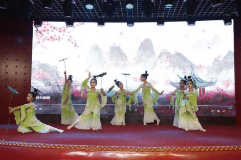 舞台之上,萌娃们灵动可爱,带领大家穿越时空,循着“长安三万里,诗韵满乾坤”的意境,梦回大唐、共赏盛世风华。一曲清新优美的《荷叶翩翩》,如春风拂过荷塘,婉转清雅、意境悠长,将“马年行大运,福气满晨钟”的美好祝福送到每一位乡亲心田。